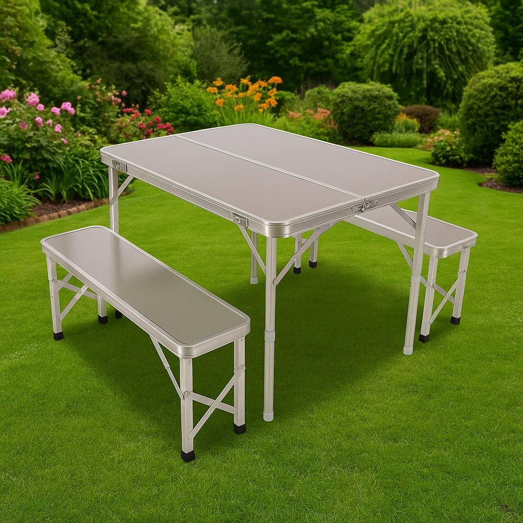 Portable Picnic Table with Benches | Folding Aluminum Benches